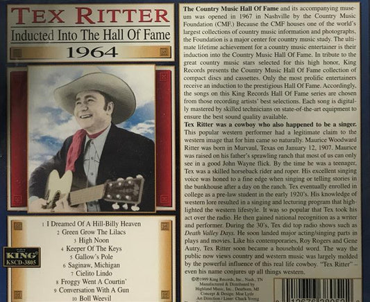 CD - Tex Ritter - Hall Of Fame , Inducted 1964