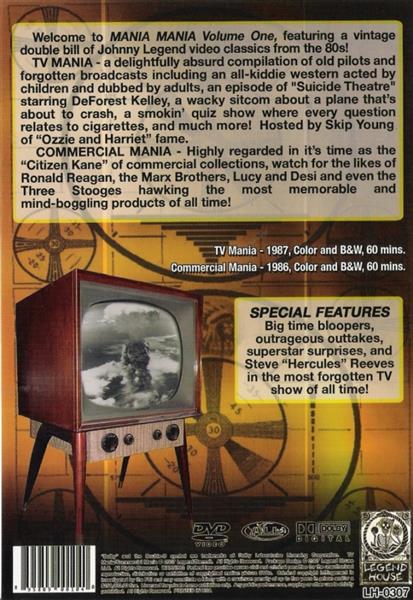DVD - Johnny Legend Presents - Mania! Mania! Vol. 1 - Commercial Mania / TV Mania DVD