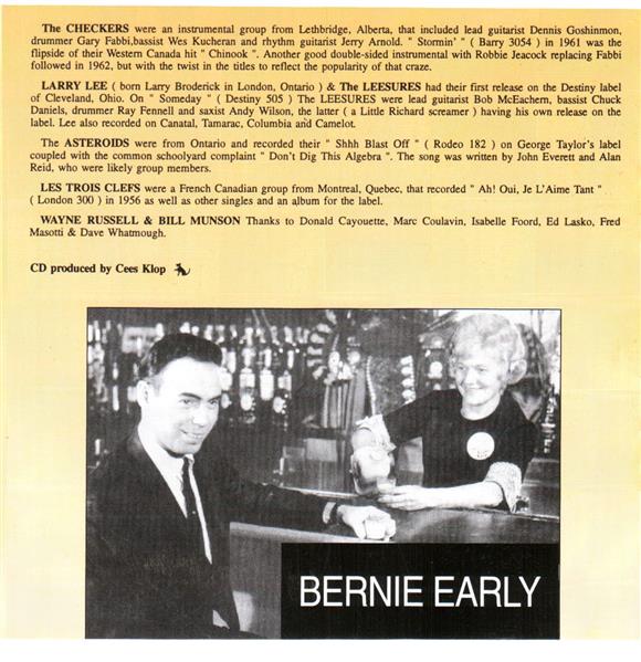 1. Kenny And The Be-Bops - Lindy Lou, 2. Dickie Damron - Gonna Have A Party, 3. Dickie Damron - Rockin' Party, 4. Jack Bailey & The Naturals - Oh What Love Is, 5. Red Shea - Moon Boogie Twist, 6. Jack Bailey & The Naturals - The Bad Appel, 7. The Dukes - Little Woman, 8. Barry Boyd And The Frantics - Gion' Home To Memphis, 9. Gary Cooper - Come On Pretty Baby, 10. Jimmy Merrill & The ???? - A Woman's Mind, 11. Cliff And Jerry - Looking For My Baby, 12. Tommy Danton & The Echoes - Oh Yeah, 13. The Versatiles - Rockalena, 14. The Blue Tones - Shake Shake, 15. Vanda Kings - Oh Watcha Do!, 16. The-Hi-Fives - Mean Old Woman, 17. Bernie Early - Ferris Wheel Twist, 18. Billy Guitar & The Night Hawks - Here Comes The Night, 19. The Rockatunes - Woman Fever, 20. Jimmy Ordge - Easy Rockin' Chair, 21. The Checkers - Stormin' 22. Tommy Danton & The Echoes - Rocket To The Moon, 23. Tommy Danton & The Echoes - Twenty One, 24. Dick Damron - I Guess That's Life, 25. Dick Damron - Black Maria, 26. Barry Boyd And The Frantics - You're For Me, 27. Larry Lee & The Leesures - Someday, 28. Dick Damron - That's What I Call Livin' 29. The Asteroides - Shhhhhh Blast Off, 30. Ler Trois Clefs - Ah! Qui Je L'aime Tant, 31. Bernie Early - Rock Doll
