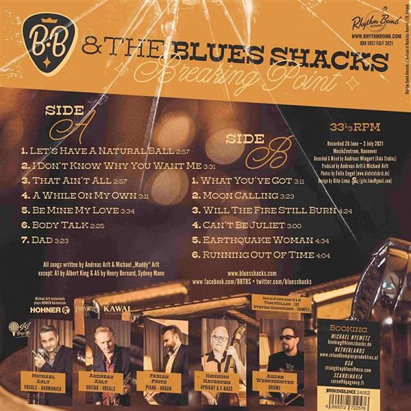 Deutschlands Top-Bluesband meldet sich kurz nach dem 30-jährigen Jubiläum mit einem brandneuen Studioalbum zurück. CD im dreiteiligen Digisleeve und limitierte LP auf RHYTHM BOMB. Rund 4.000 Liveauftritte weltweit, mehrfache Gewinner des German Blues Awards, Preis der deutschen Schallplattenkritik, 16 Alben, als „beste Band“ oder „Artist of the year“ nicht nur von deutschen, sondern auch britischen und französischen Medien gekürt, Shows in mehr als 20 Ländern - das Hildesheimer Quintett um die Brüder MICHAEL und ANDREAS ARLT hat Unglaubliches erreicht. Und mit „Breaking Point“ knüpfen sie einfach an ihr bewährtes Erfolgsrezept an: Mit vielen beeindruckend stilsicheren Eigenkompositionen und wenigen ausgewählten Coversongs feiern und transzendieren sie den Bandblues der 40er bis 50er Jahre, wie er in den Hotspots Chicago, Louisiana, New Orleans oder Memphis begründet wurde, stellen mit verblüffender Leichtigkeit die enge Verbindung zum Soul der 60er her und schaffen es erneut, Musik zu spielen, die gleichzeitig seit Generationen urvertraut wirkt und dennoch die unverwechselbare Handschrift der Band aus Niedersachsen trägt. Im Studio unterstützt von TOM MÜLLER (Saxophon) und STEFAN GÖSSINGER (Trompete), präsentieren MICHAEL ARLT (Gesang, Harp), ANDREAS ARLT (Gitarre, Gesang), HENNING HAUERKEN (Kontrabass, E-Bass), FABIAN FRITZ (Piano, Orgel) und ANDRE WERKMEISTER (Schlagzeug) ein neues BLUES SHACKS-Meisterwerk. Die 15 Songs auf „Breaking Point“ bewegen sich im Weltklasse-Format und sind für jeden Bluesfan absolut unverzichtbar.