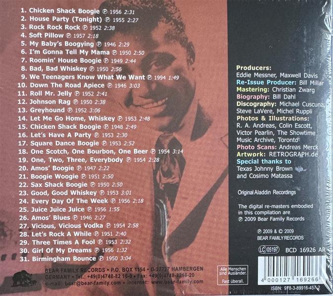 Die wildesten Rock-Aufnahmen aus Amos Milburns Hoch-Zeit zwischen 1946 und 1957! Auch enthalten: die bedeutendsten R&B-Hits des Pianisten! Milburn beeinflusste Fats Domino und den gesamten R&B aus New Orleans! Sehr ausführlicher Begleittext, inklusive eines neuen Interviews mit dem Gitarristen Texas Johnny Brown, der zu Amos' Chickenshackers gehörte! Die definitive Werkschau einer der größten Rock/R&B-Legenden! -- Amos Milburn war einer der bedeutendsten Hit-Lieferanten des Nachkriegs-R&B. Er komponierte und spielte wilde Lieder über Sex, Suff und Feten-Exzesse - das war Rock 'n' Roll in Reinkultur! Amos ließ von Beginn an die Funken für das Aladdin-Label in Los Angeles sprühen. Gleich bei seiner ersten Session spielte er eine unglaublich treibende Version von 'Down The Road Apiece' ein - und mit Titeln wie dem 'Chicken Shack Boogie' 'Roomin' House Boogie' und 'Sax Shack Boogie' heizte er nachhaltig den R&B-Charts der Endvierziger ein. All diese Titel sind auf 'Amos Rocks' enthalten - genau wie seine Schluck-Hymnen 'Bad, Bad Whiskey' 'Let Me Go Home Whiskey' und 'One Scotch, One Bourbon, One Beer'. Ein besonderer Höhepunkt ist Amos' umwerfende 1956er-Neueinspielung des 'Chicken Shack Boogie' die in New Orleans mit Lee Allen am Saxophon und der Drummer-Legende Earl Palmer entstand. Fats Domino und seine wegweisenden Zeitgenossen hatten noch kein einziges Studio von innen gesehen - da hatte Amos Milburn längst die Fetzen fliegen lassen! -- / -- The wildest rockin' recordings from Amos Milburn's golden years ...1946-1957! Plus the piano pounder's greatest R&B hits! Milburn influenced Fats Domino and New Orleans R&B! Hugely detailed liner notes, including a new interview with guitarist Texas Johnny Brown, one of Amos' Chickenshackers! The last word on the first name in rockin' rhythm & blues! -- One of the greatest hitmakers of the postwar R&B era, Amos Milburn wrote and recorded uproarious odes to sex, booze and all-night partying. It was rock 'n' roll in all but name. Amos rocked the house for the Los Angeles-based Aladdin label right from the beginning. At his debut session in 1946, he waxed a piledriving 'Down The Road Apiece' and he kept the late '40s R&B hit parade jumping with 'Chicken Shack Boogie' 'Roomin' House Boogie' and 'Sax Shack Boogie'. They're all here on 'Amos Rocks,' along with his odes to the bottle, like 'Bad, Bad Whiskey' 'Let Me Go Home Whiskey' and 'One Scotch, One Bourbon, One Beer'. Plus, there's Amos' torrid '56 remake of 'Chicken Shack Boogie' cut in New Orleans with Lee Allen on sax and Earl Palmer driving the drumbeat. Long before Fats Domino or any of his fellow revolutionaries came anywhere near a studio, Amos Milburn rocked!